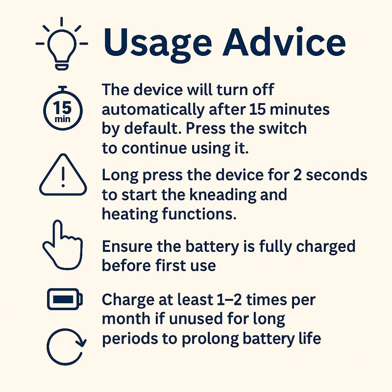 The built-in carbon fiber heating module provides a warming effect during massage—helping to promote blood circulation, enhance relaxation, and relieve muscle soreness. The warming function, combined with massage, can improve the experience of relieving muscle fatigue.